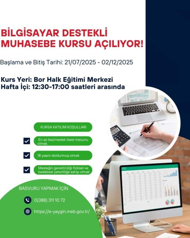 BİLGİSAYAR DESTEKLİ MUHASEBE KURSU AÇILIYOR!